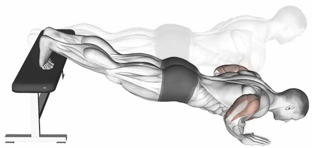- Decline push-up dengan fase negatif diperlambat