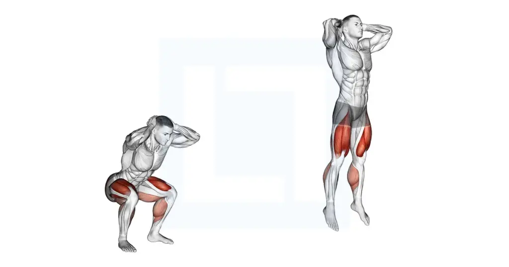 - Jump squat dengan pendaratan atau turunkan badannya tetap terkontrol