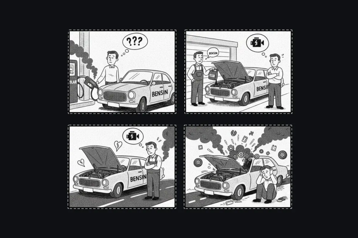 Tapi bertahun-tahun, kamu isi solar. Terus heran kenapa mesinnya kasar, tenaga nggak keluar, sering mati mendadak.