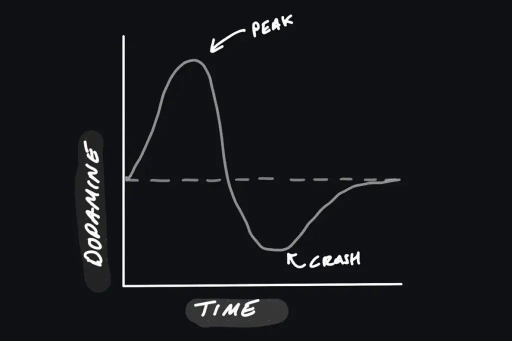 Setiap kali kita scrolling, makan junk food, atau ngerokok. otak kita dapat lonjakan dopamin besar dan cepat. Nikmat sesaat. Tapi setelahnya, kadar dopamin kita anjlok di bawah titik normal.