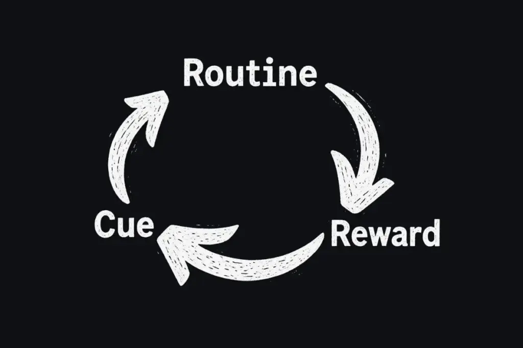 Aku ambil ide dari Charles Duhigg, dalam bukunya The Power of Habit, menjelaskan bahwa setiap kebiasaan punya tiga komponen: