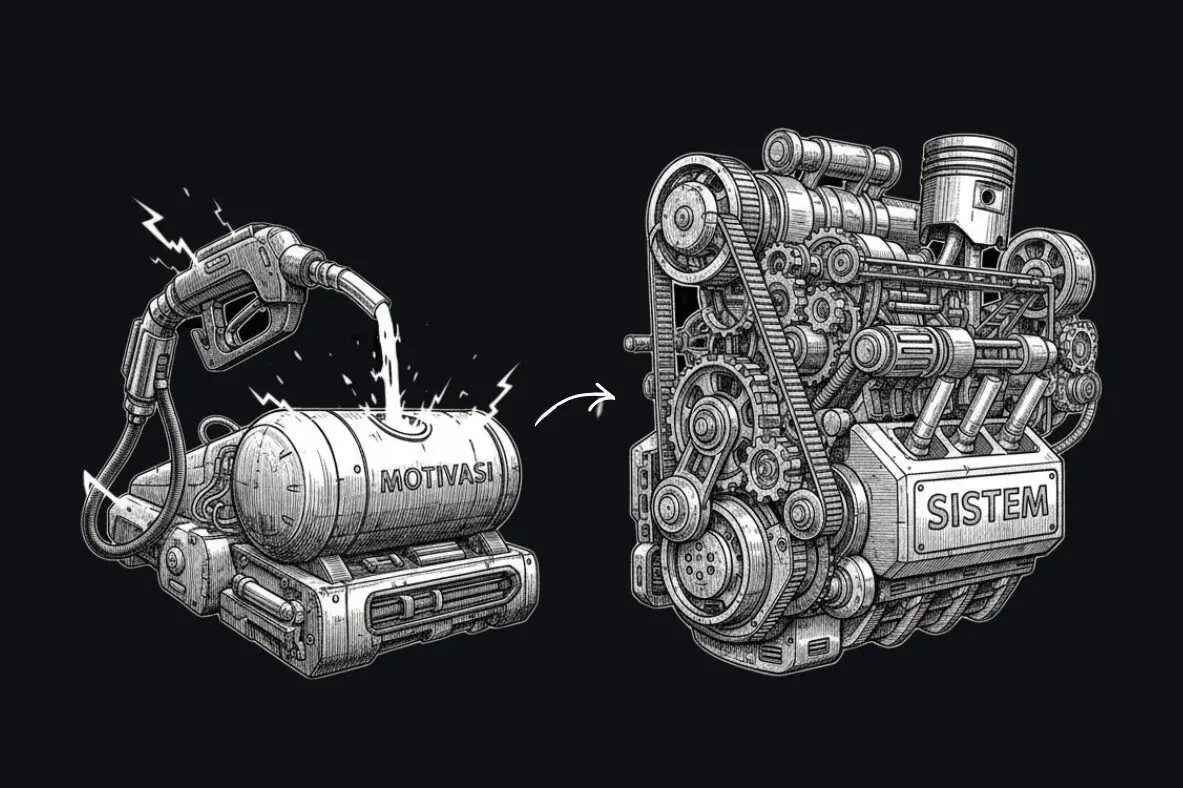 Masalahnya bukan motivasi. Masalahnya kamu bangun sistem hidup yang butuh motivasi setiap hari buat beraksi.