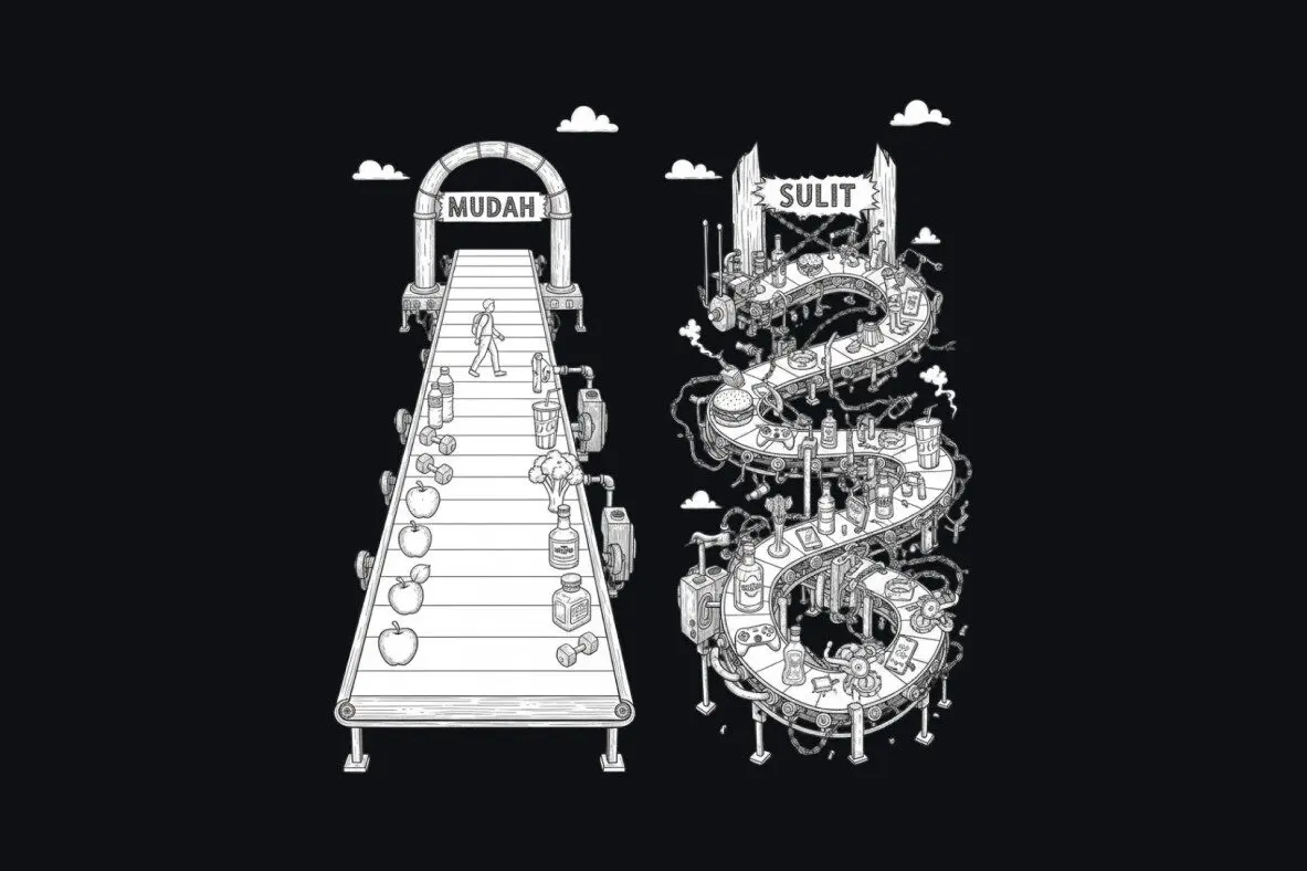 Aku juga terapin prinsip yang sama buat hal yang gak sehat, tapi dibikin ribet.